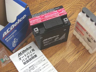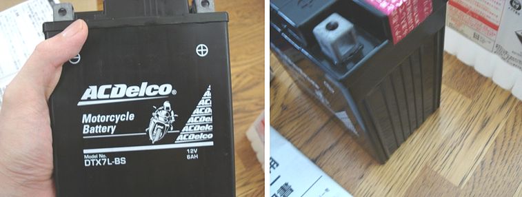 最近はセルの回りが弱く、走行後でも弱々しく回ることもあって始動性が悪いのでバッテリーを交換する。
