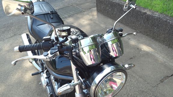 装着完了。 付属されてたステーは使いませんでした。 必要以上に長いし、本体を台無しにする存在感があったので。 ホームセンターの汎用ステーを加工、塗装して使用しました。