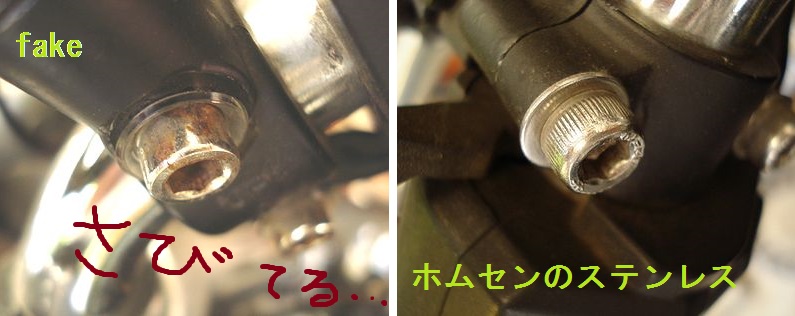 本家rizomaには無い明らかに偽物だろっていう付属ステー、それに付いてたボルト。