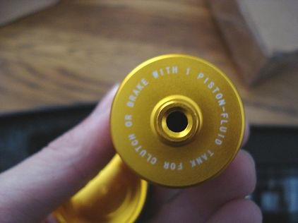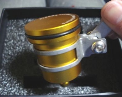 そのコピー品のフルードタンクを買ってみた。 リア用、色はゴールド。
