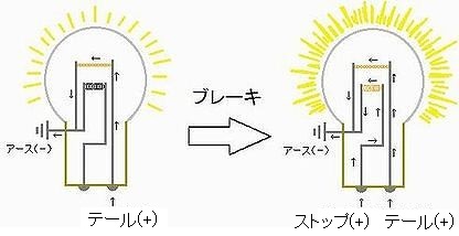 ・テールランプは、 "抵抗A と 抵抗B" で電流をより少なく