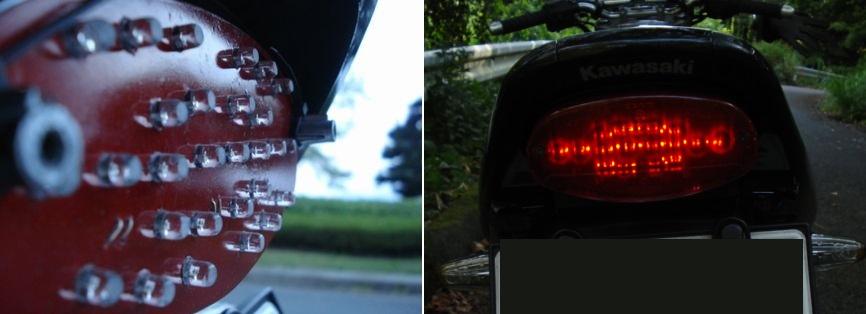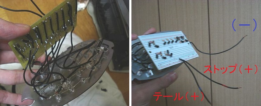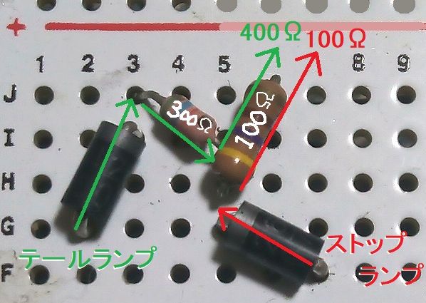 クリアレンズまたはカラートーンが今回のようにライトなら、広角のLEDを30個程度、テールは1mA程度、ストップは10mA程度で十分でした。