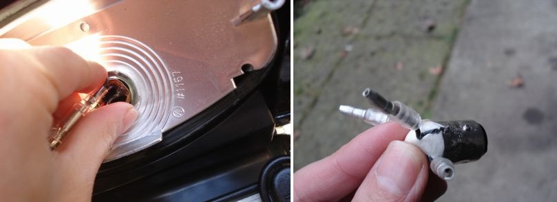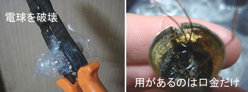 電球を破壊して、ソケット(口金)をゲット。 口金だけってのも店によっては売ってるけどね。