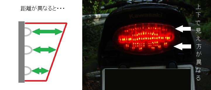 LEDは電球と違って目に来るね。 でも結局はテールレンズのカラートーン次第。