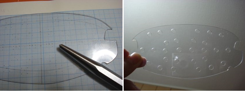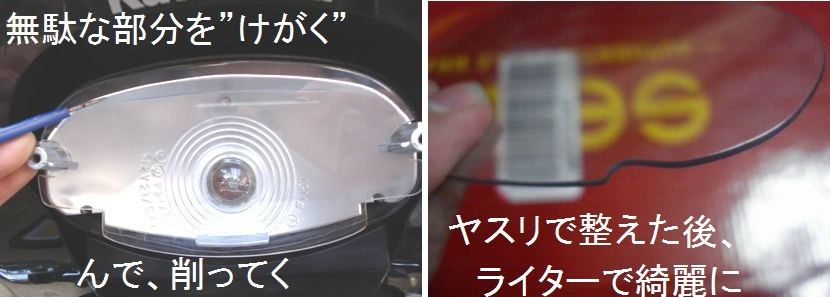 細かい曲線は熱したドライバーなどで溶かして大まかに成形、ヤスリで整えます。