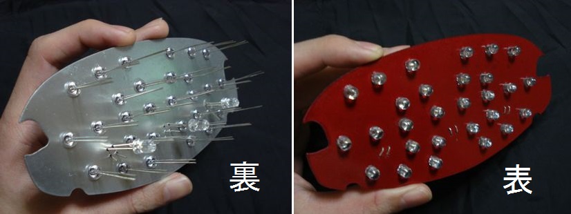 2,30個もLEDを使うとなると1,2個ぐらい輝度の低いものが混じる。不良品は事前チェックで-。