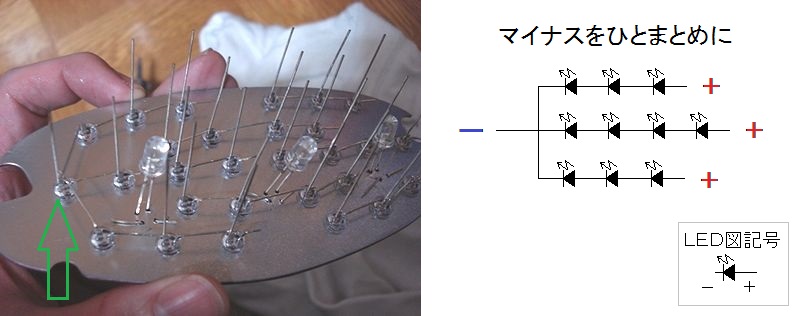 製作2-3. 直列 LEDのマイナスをひとまとめに