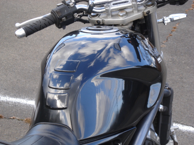 バイクの場合、ニーグリップする部分は塗布しない方が良い。ついでに拭き上げる程度で。