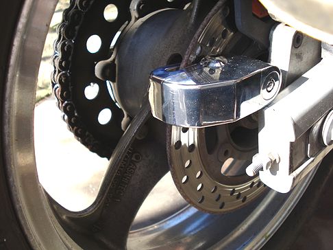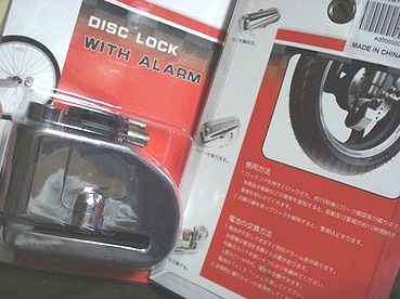 ネットでよく見かける銀メッキされた安物のアラーム付きディスクロック。