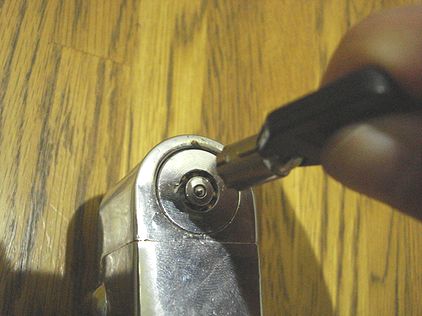 狙いを定めて正確に 鍵を突き刺し、押し込んで回す。