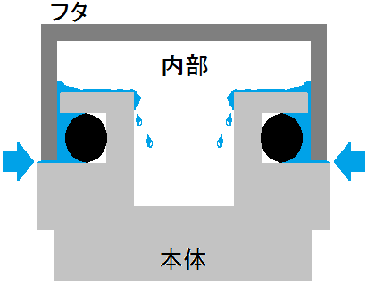 中を見ると分かるんだけど 防水のためのO-リングが張り出しておらず、全く意味をなしていない部分があります。