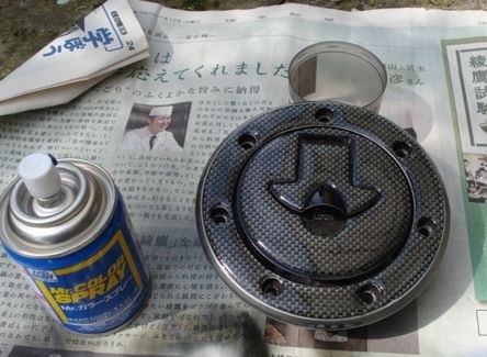 ▲ 以前、安っぽいタンクキャップカバーを塗装によって本物カーボン調にして使っていました。