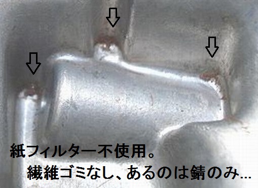 サビは燃焼室内を削るコンパウンドになり得る嫌な存在。 出来れば濾したい。