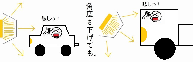 これだとウインカーの取り付け角度を下げたところで結局は誰かしらの目を潰すことになる。