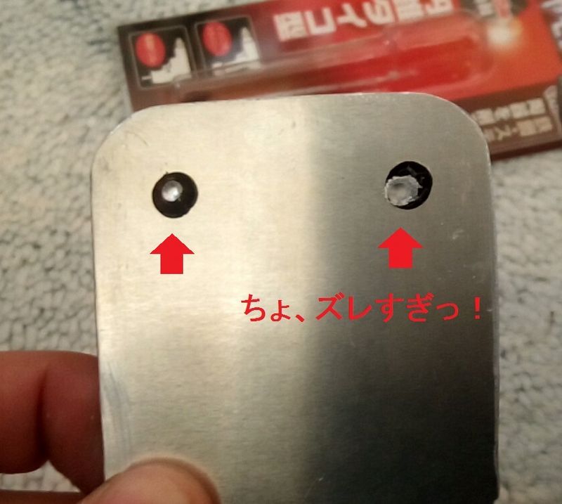 ひとまず小さな下穴を開けて…、ってズレすぎ!