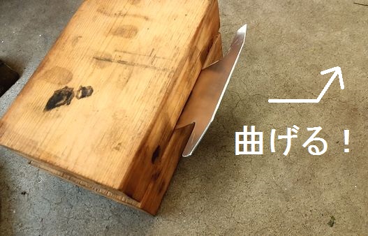 立体的にする。木で挟み込んで手でグイっと曲げる。