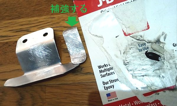 端材を有効活用。 同じように曲げてJBウェルドで裏に接着、ステーを補強する!