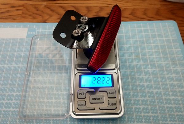 樹脂製のナンバーホルダーの先端に着くものだからこの重量差は大きいだろう。 軽ければ走行中にナンバー周辺が暴れにくくなるはず。