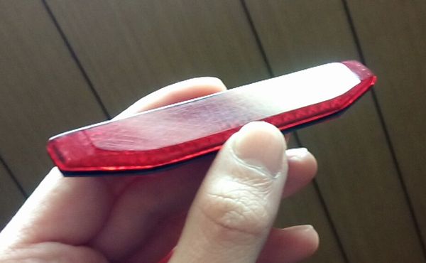 削りすぎると穴が開くね。 中は点々と空洞があるみたい。 端の部分に穴が開いてしまったのでカーフィルムでフタをしよう。