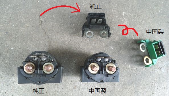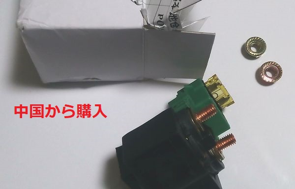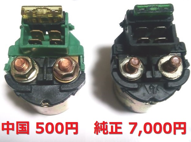 中国製スターターリレー、500円。 純正はと言うと税込み7,000円オーバー。