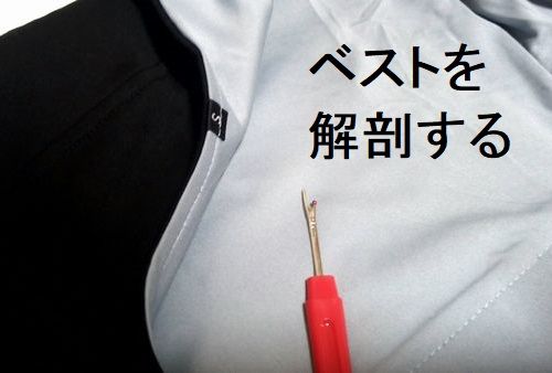 幸いこのベスト、薄手の生地が合わさってるだけ。リッパーで簡単に開けられるし、ミシン縫いで簡単に戻せる。