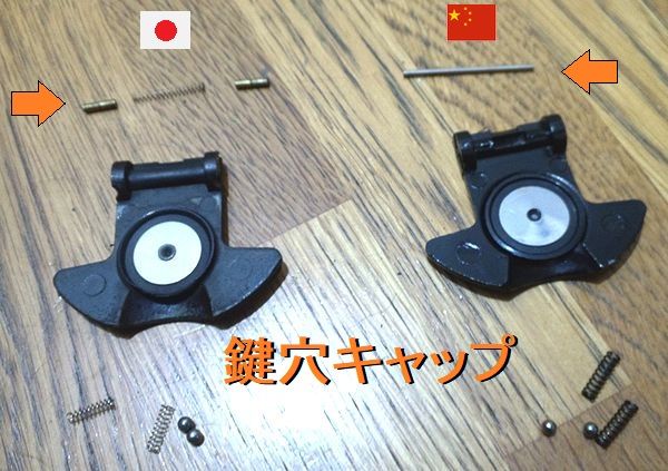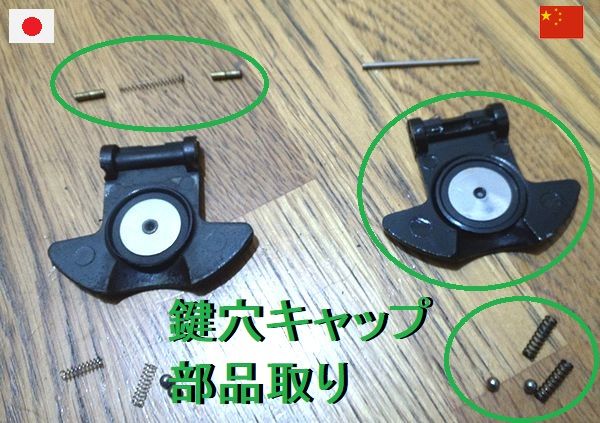 鍵穴キャップ。ここは構造が単純な分、中国製の方が優れてるだろう。