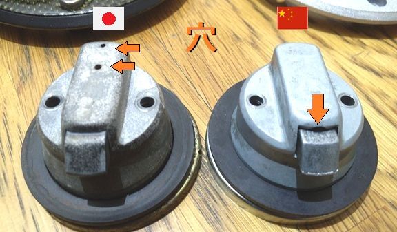 ついでに日中のタンクキャップを比較、...この中国製タンクキャップ、不良品か?