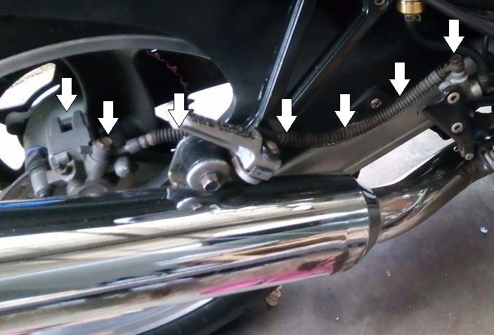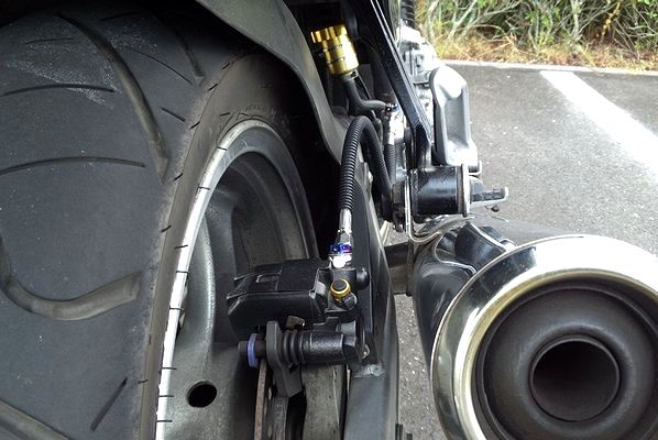 バリオスのリア純正ホース長はおよそバンジョーアダプター部分込みで約39cm。今回購入したホース長は38.5cm。バンジョーアダプター込みで+4、5cmのになる見込み。