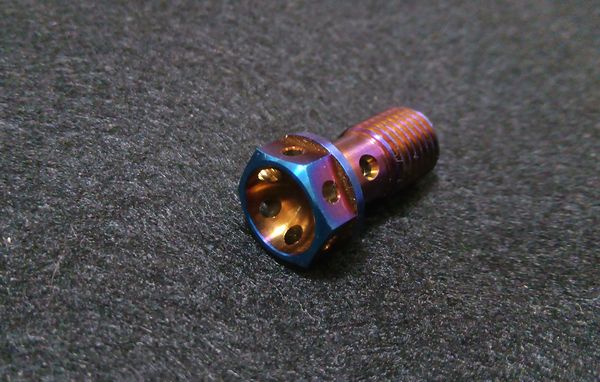 一番の売りは綺麗な焼け色のチタンバンジョーボルト、