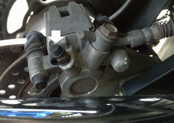 具体的にどこのカスタムパーツかと言うと、ブレーキキャリパーのブリーダーのゴム製キャップの上。ここにかぶせる。