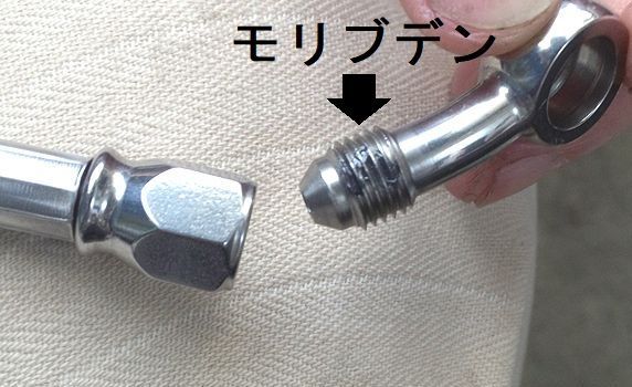 説明書どおり、まずはバンジョーアダプターのネジ部にモリブデングリス塗布し、軽くねじ込む。