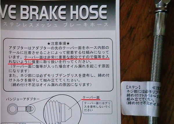 ではビルドアラインのブレーキホースへの交換作業。