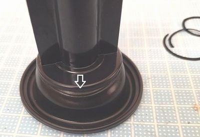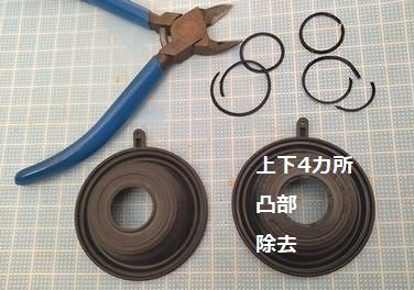 ダイヤフラムのはめ込み部分には上/下に2カ所(計4カ所)、円状に、固定のための凸部がある(写真赤矢印)。