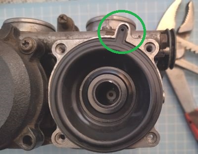 ダイヤフラムの通気口の位置は、はめ込んだ後も微調整なら可能。なるべく位置を合わせて取り付けます。