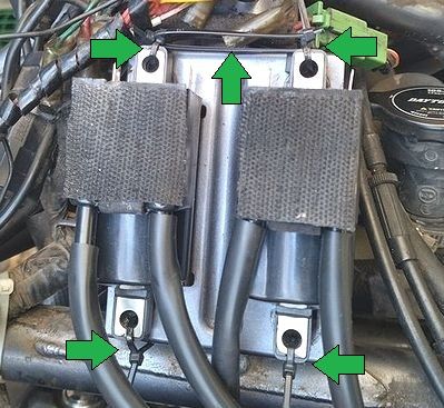 切り出したゴム板ダンパーはフレームとイグニッションコイルの間。