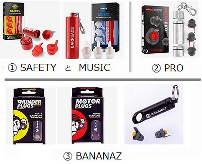 EARPEACEにはMOTOの他、作業用のSAFETY、音楽ライブ用のMUSICがあります。