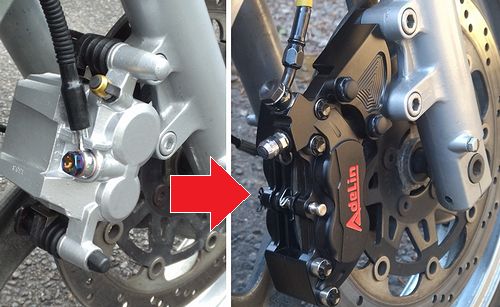 低コストでブレンボ風! Adelin(アデリン) 対向4potブレーキキャリパー