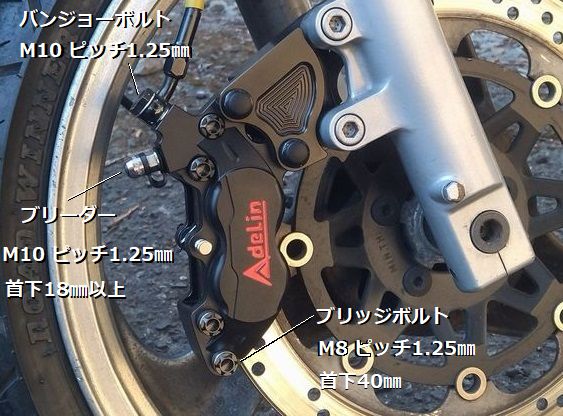 ・ブリーダー(ブリードプラグ)は、よくある安いチタン製は首下14mmほどと短く使用不可! ブレンボはピッチ異なる。
