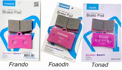 アデリンのブレーキパッドは、ブレンボ用、フランド用、そのパチモンでもOK。デイトナからも出てる。