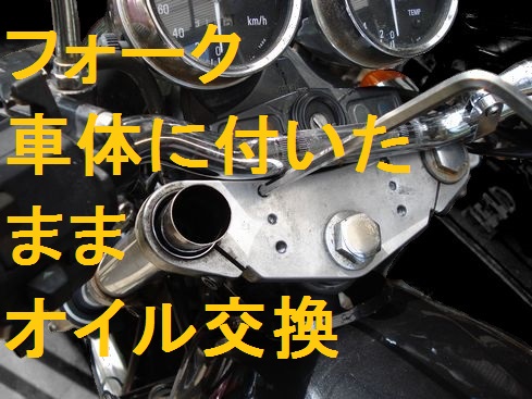 バリオスは フォークを車体に付けたままオイル交換が可能です。
