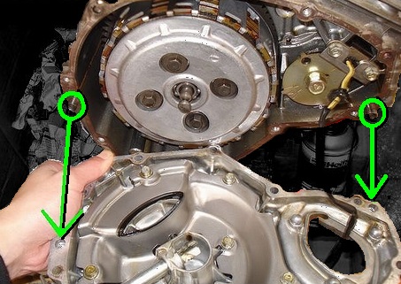 カムチェーンガイド、クラッチの交換の際には着脱することになる右側のエンジンカバー。