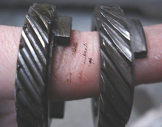 左が正常なギア、 右が摩耗してダメになったギアです。
