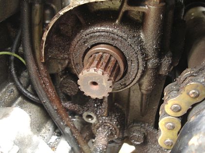元あった場所にフロントスプロケットを取り付けます…って汚いからその前に軽く掃除しよう。