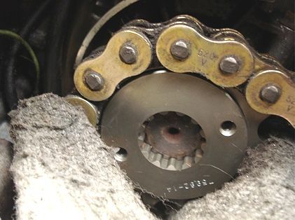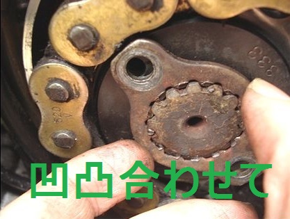 掃除が済んだら、チェーンに新品のスプロケットを掛ける。