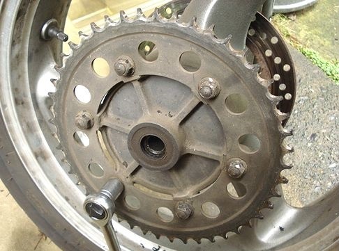 あとは レンチでナットを外せばリアスプロケットも外れる。