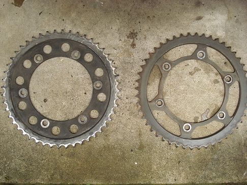 ZXR250-Rのスプロケの方が肉抜きがしっかりされていて、持ってみると軽い。
