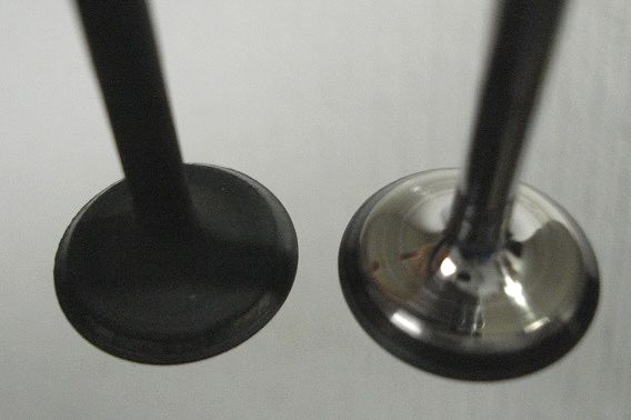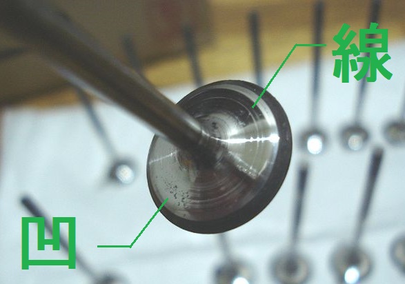 バルブヘッド周辺の梨地を鏡面にする事で空気抵抗を減らし、吸・排気効率を向上させる。