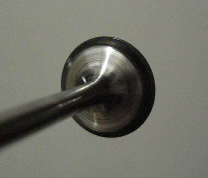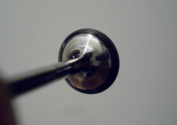 コンパウンドを付けてバルブシートに軽くこすればここの汚れは簡単に落ちます。