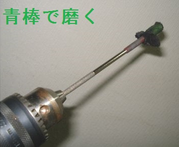 2000番で磨き、適当な布を巻きつけたドリルに青棒を塗布して磨く。