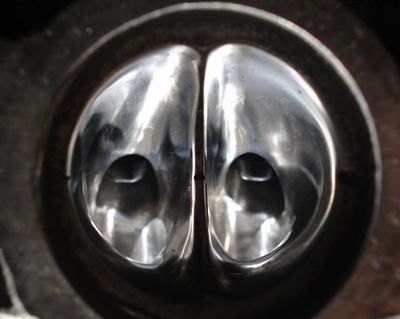「鏡面にすると混合気が層流となり燃焼効率が落ちる」らしい…。